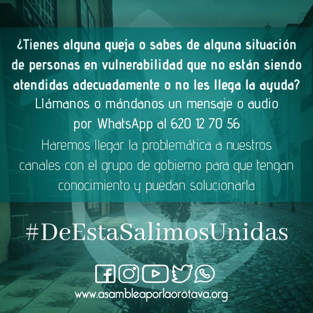 Desde Asamblea por La Orotava queremos dejar claro que los Servicios Sociales de nuestro municipio trabajan a destajo, dentro de los marcos establecidos. Los mecanismos con los que se cuenta son similares en todo el Estado. Apostamos por unos modelosnde Servicios Sociales no asistencialistas.