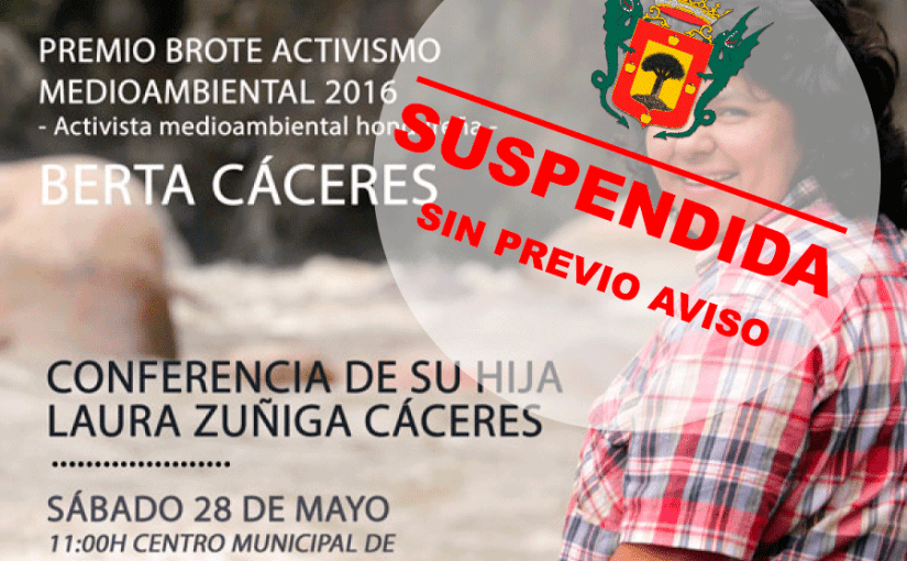La conferencia que iba a pronunciar Laura Zúñiga Cáceres, hija de la activista medioambiental hondureña Berta Cáceres (asesinada el pasado mes de marzo por liderar la oposición a un proyecto hidroeléctrico que amenazaba el entorno de comunidades indígenas), en el Centro Municipal de Servicios Sociales de La Orotava, este sábado, a las 11 de la mañana, fue suspendida sin previo aviso. Las personas que esperaban por fuera del centro estaban indignadas, pues las puertas se encontraba cerradas a cal y canto y no se daba ningún tipo de información al respecto. Uno de nuestros concejales, José Antonio Lima, intentó averiguar qué ocurría, pero sus llamadas resultaron en vano, pues, al parecer, nadie sabía nada. El acto estaba organizado conjuntamente por nuestro Ayuntamiento y el Cabildo de Tenerife, dentro del Festival Internacional de Cine Medioambiental de Canarias. Para una próxima ocasión, lo mínimo es poner un cartelito en la puerta, que tanto no cuesta.
